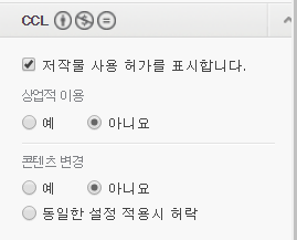 예전 티스토리 블로그 사용하던 구형 글쓰기 시절에는 CCL을 설정하게끔 되어 있었는데요.